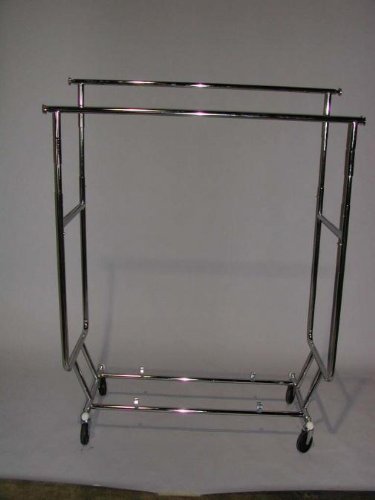 This commercial grade, collapsible, rolling garment rack has 2 parallel hang rails for double the hang space. The rack can collapse to fit in a car trunk or under a bed, yet it holds up to 250 lbs. It has 48" double hang rails with 12" pull outs on each end. There are 3 height adjustments - 55", 60" and 65". It has 4" ball bearing casters and includes add on clips for hang rail storage. It is covered by our "no overload" guarantee which states that the rack won't bend, sag or break for a period of 5 years from date of purchase when used within stated weight limitations under normal use conditions.