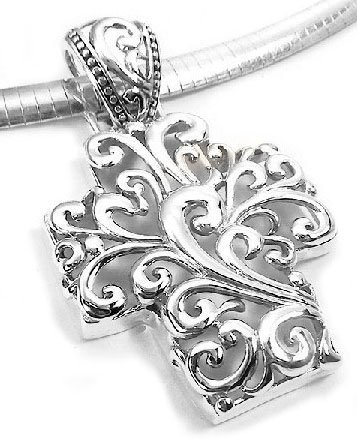 Huge Sterling Silver Filigree Swirl Cross Slide Pendant Product Description: