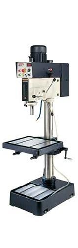 I looked long and hard before shelling out the $$$ for this drill press. I even spent about 2 months searching for a used one with similar features. Eventually, I came to the conclusion that there was no way to duplicate it's features.It is an industrial machine that I will use for both wood and metal, yet it operates off 230 volt single phase, thanks to a variable frequency drive.The speeds are variable over a wide range thanks to the variable frequency drive, and it retains full torque throughout those speeds.Switching between the two speed ranges is by a gearshift lever on the side of the head. The gear mechanism is bathed in oil so it shifts ranges and runs smoothly and quietly.The production table is really unique. It rotates, when the table is unlocked, on a 5" bearing. You just won't believe it how smoothly. And by the way. both the table lock and table raise/lower are accessible from the front of the machine which is a REAL plus for me. Now I don't have to crawl around the back of the drill press and bang my head on my shaper to get to it.That production table can support over 200#, and even when fully loaded it moves up and down smoothly and easily. That ability allows me to place a 100#, 16" by 8" XY table ( a new piece available from Grizzly) on it along with a heavy 8" vise and still have plenty of load capacity left to handle heavy workpieces. On my old machine I had to lift on the table while cranking and really struggle to move it up, even unloaded. Now it is just one hand on the crank, even with 160# of XY table and vise loaded on the table. This table is perhaps the best feature of the machine.When combined with the finest Milwaukee cobalt drill bits and a top quality Jacobs chuck with integral 3MT shaft, the runout is exceptional. I can drill through most woods at and angle with essentially no tearout on the exit hole, even without brad point bits.The 6" spindle travel allows for easier setups and less fussing with table height.I haven't had an opportunity to use the tapping feature, but I'm sure it will be just as smooth as everything else I've done with it.I give Jet a lot of credit for designing a really nice machine, and getting it fabricated to very high quality from an asian manufacturer. I'm glad I purchased it, and would recommend it to anyone who needs a high quality drill press.My ONLY issue was with the shipping crate which had been damaged on the bottom (the pallet) which didn't harm the machine but made it a bit difficult to pick off the truck with a forklift.