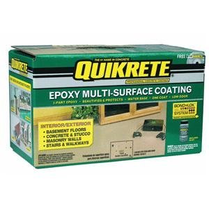 Quikrete, Gallon Kit, Light Gray, Epoxy Multi-Surface Coating, Semi-Gloss, 2-Part Water Based Epoxy Formula, For Interior & Exterior Concrete & Stucco, Masonry Walls, Stairs, Patios & Walkways, Low Odor, Covers 250 SQFT, Low Odor, Kit Contains Gallon Part A Base, QT Part B Hardener, Bond Lok Cleaner, Color Flakes, DVD & Instructions.