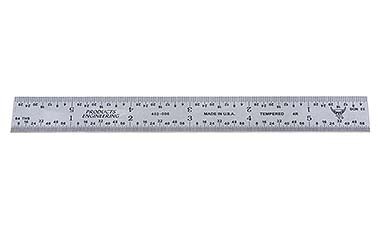 48-inch 4R rigid steel rule: I have had this rule for over a year now and have been very happy with it. I checked the straightness with my Starrett 6-foot straight edge bar and it was within .002-inch over the entire length. The accuracy was well within the limits for woodworking. The engraving of the divisions was also accurate using a 12-inch standard and sliding it along to see if the divisions were constant throughout the length. Unlike some cheap rules the marks are on all four edges.The desigination "4R" indicates the four scales on the ruler.( 8, 16, 32 and 64th)which is an industry standard. Other sets of scales may be used on other rulers and are available. The 8ths scale is good for rough layout work. I tend to use the 16th scale and the 32th scale the most.