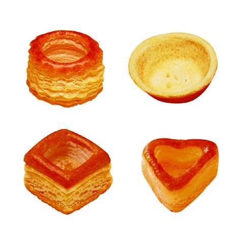 Pidy mini cocktail assortment puff pastry product, ready to fill and enjoy for the first course, main dish or dessert. Four shapes. golden brown color, egg glaze and crispy structure. 288 pieces per case and they are 1.5 inches in size. these are excellent party pleasers.